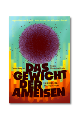 Plakat und Werbeflyer zum Theaterstück "Das Gewicht der Ameisen".